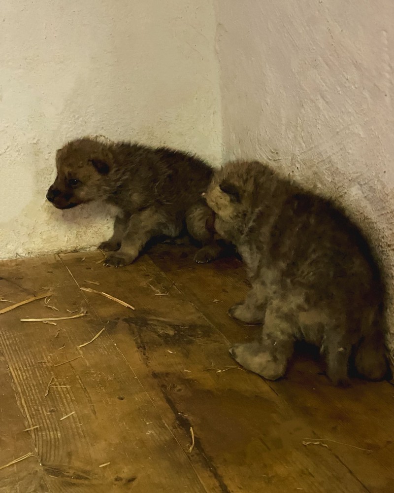 Первые дни заботливые волчицы прятали малышей в укрытиях, но сейчас щенки начали самостоятельно выходить наружу. Самые внимательные посетители уже совсем скоро могут заметить маленьких исследователей в вольере.